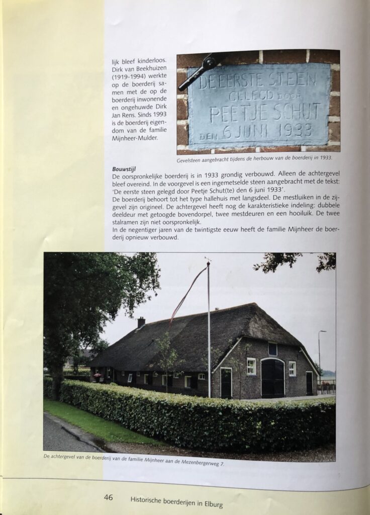 De boerderij van de familie Mijnheer staat in de kadastrale atlas 1832 genoemd met de naam ‘Klaphek’. Over het erf liep vroeger een voetpad richting Nunspeet. Het pad werd afgesloten door een schuinstaand hek dat vanzelf dichtklapte als je er door was. Vandaar de naam Klaphek…..